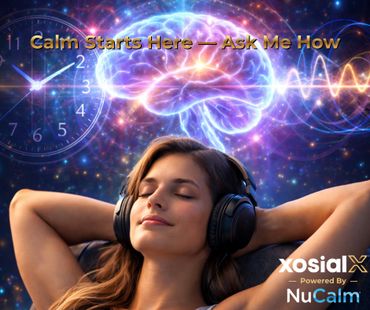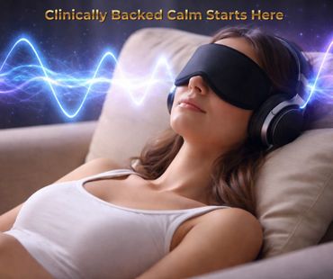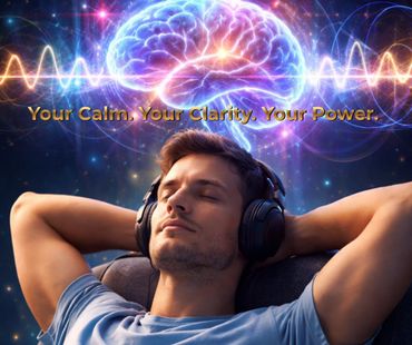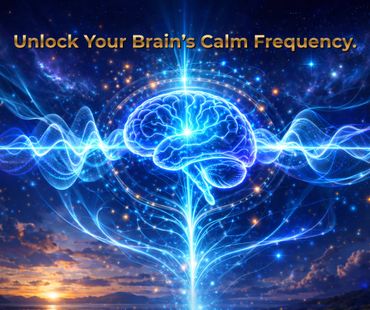 Glowing brain illustration with calming waves and the text 'Calm Your Mind. Elevate Your Life.'